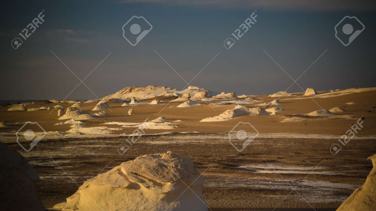 エジプト サハラ砂漠の白い砂漠の抽象的な自然岩の形成の夜の写真 の写真素材 画像素材 Image